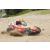 Chassis features a 2mm thick FRP plate with an aluminum reinforcing plate for strength and flexibility to ensure stability. 4-wheel independent suspension features front double trailing arm and rear swing axle setups, die-cast suspension arms, and oil dampers. Electronics and battery are protected by a durable clear plastic mechanism box. Comes equipped with full ball bearings to reduce friction loss, and mounted on the 3-piece center-lock wheels are grooved front tires and rear tires with block tread pattern that ensure superb off-road performance.