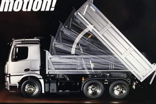 This actuator set is designed to complement the Mercedes-Benz Arocs 3348 Dump Truck. When using a 4-channel transmitter, the dump feature of the trucks bed can be fully controlled.