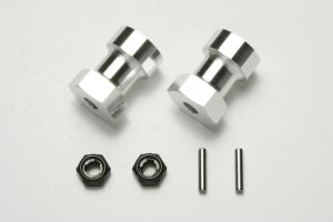 Includes: aluminum wheel adapter x 2, 4mm flange lock nut x 2, 2x10 stainless shaft x 2