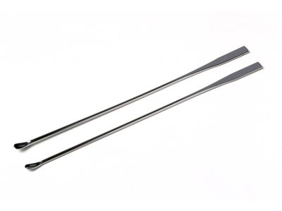 This stainless steel tool is designed for stirring bottled paints, and for blending different color shades. One end is shaped like a small spoon, while the other is flat, like a spatula. Tool length is 15cm. Includes two stirrers.