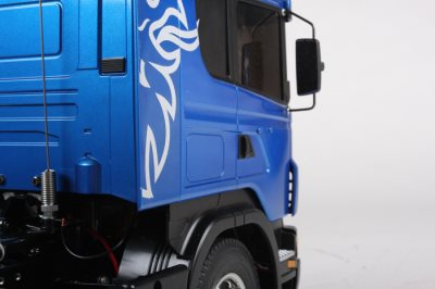 Tamiya proudly presents the R470 Highline, one of the trucks belonging to Swedish manufacturer Scania's International Truck of the Year 2005 award-winning R Series. Body features replica-quality realism and the chassis features numerous metal parts for the frame and suspension for an added sense of volume. Assembly of the 3-speed transmission is effortless, and when used with a 4-channel transmitter, it will give fans full control of realistic gear shift operations. Beautifully reproduced cabin tilts forward separately from the fenders, just like the actual truck. The interior and exterior of the fenders themselves have also been accurately modelled for the most realistic look possible. Kit-included coupler enables linkage with any of Tamiya's currently available 1/14 scale trailers, and the R470 is compatible with a wide range of Tractor Truck Option Parts as well.