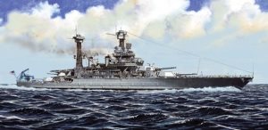 USS CALIFORNIA (BB-44), the second of two Tennessee Class turbo-electric battleships, was laid down on October 25th 1916, launched on November 20th 1919 and commissioned on August 10th 1921. At the time, CALIFORNIA was the largest warship built at Mare Island Naval Shipyard in California. In the raid on Pearl Harbor on December 7th 1941 CALIFORNIA was sunk by Japanese torpedo action. Following the crews successful efforts that prevented capsize, CALIFORNIA was refloated on March 25th 1942 and made for Puget Sound ship yard for rehabilitation and modernisation, completed by January 1944. With sister Tennessee, CALIFORNIA participated in the invasions of Saipan, Guam and Tinian in June and July 1944, and in the Mariana and Palau islands invasions from June to November 1944. Tennessee collided with CALIFORNIA in the Pacific on August 23rd 1944, both ships sustaining damage, with fatalities on CALIFORNIA. The naval Battle of Leyte Gulf in October 1944 saw the sister ships in action again. On January 6th 1945 CALIFORNIA was struck by Kamikaze plane during the Lingayen Gulf campaign and returned to Puget Sound for repairs. CALIFORNIA was back in action in the western Pacific at Okinawa in June 1945, remaining in the East China Sea on minesweeping duty. CALIFORNIA supported the Allied occupation forces in Japan until October 1945 before returning home to Philadelphia PA. CALIFORNIA was decommissioned in February 1947 and sold for scrap in July 1959.