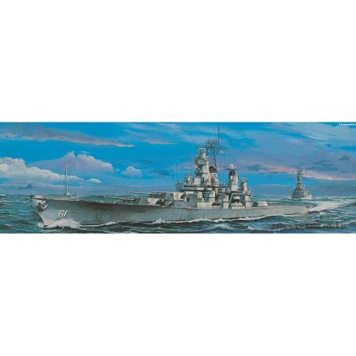 Trumpeter USS Iowa BB-61 (1985)Iowa Class Fast Battleship. L: 386mm, W: 47mm, Waterline plate. 1:700 scale plastic model kit from Trumpeter, requires paint and glue.