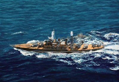 Colorado Class Battleship. The second ship to be named after the 35th State, and the fourth and last in the Colorado class. Laid down at the Newport News shipyard in April 1920, launched in 1921 and commissioned for service on December 1st 1923. During the 'twenties and 'thirties WEST VIRGINIA was engaged on training and various fleet problem-solving exercises. Deployed to Hawaii in 1940, later hit and badly damaged by the Japanese Navy in the attack on Pearl Harbor on December 7th 1941. Refloated in May 1942 and dry-docked for rehabilitation and extensive modernisation. After refit was completed in July 1944, WEST VIRGINIA resumed active service in the Leyte Gulf naval battle, Lingayan Gulf, and battles of Iwo Jima and Okinawa. WEST VIRGINIA assisted the Allied Forces after Japan's surrender, finally returning to standby. WEST VIRGINIA was retired in 1947 and sold for scrap in 1959.