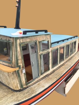 The kit has highly detailed accessories. LED lights are included to enhance the detail of the cabin interior. The English building instructions have detailed 3D construction drawings. Hull is single plank on bulkhead construction. This is an easy straightforward model to build. An RC conversion kit is available as a separate item.