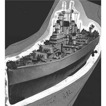 A 64in. (1:135) model of an American heavy cruiser. The original was of all metal construction, but can equally well be built in wood, for steam or electric drive with or without R/C. On one sheet.