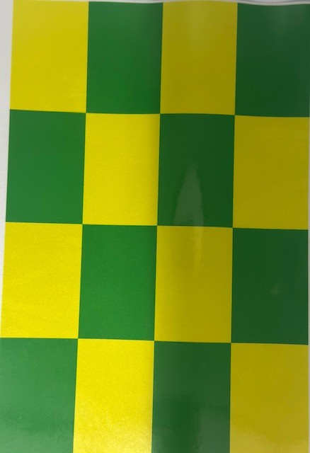 Becc Vehicle Safety Cheque Green/Yellow 1:12 Scale Reflective safety cheque printed on reflective vinyl