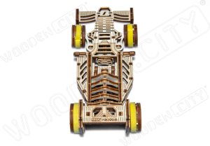 Bolid! One of the stars of racing cars with front swivel wheels, inertial mechanism and returnable wheel. Rubberized wheels and seat for a one real racer is a great components of this model. Sport cars are your passion? So, that model will be a great addition to your collection. Assemble it together with your good friend, get one more wooden car and arrange a race at home.