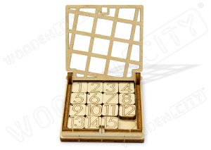 The 15-puzzle is classic sliding puzzle, consisting of numbered square tiles which can be slid in a frame using an empty slot. The object is to slide all tiles where they belong using the empty space. The solved state is marked with numbers.
