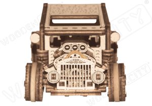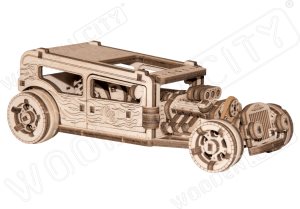 Our Wooden Hot-Rod has a full-pack of movement function: front swivel wheels, inertial mechanism and returnable wheels. Looking on this car from above through a roof, you will find: