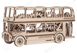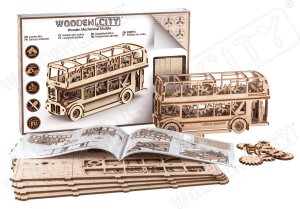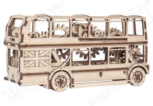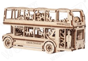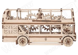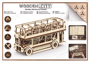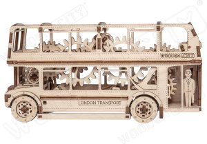 Go to London! When you do, an absolute must-do thing in the capital of Great Britain is to take a ride on a red doubledecker bus which rides through the streets with only a door-less open platform for passengers to get on and off. In 1954 the first prototype doubledecker was created (entering service two years later in February 1956), and in December 2005 the bus made its last run as a city passenger transport. However, several buses still ply around London for tourists to see the city. These buses had their own urban customs. For example, on the second floor, the front row of seats was typically regarded as only for lovers. The conductors were always joking and amusing passengers as the bus traveled through the city. The LONDON BUS by WOODEN.City is rubber band-driven (runs on a rezinomotor). It has an open rotating gear mechanism. It carries passengers, and one of them even stands on the open platform on its rear. Just about to jump from it! Assembling 3d jigsaw puzzles for adults can be difficult. It is possible that it may take several evenings of concentrated silence. However, it is better to assemble your LONDON BUS while listening to the music of the famous band The Beatles! Then your imagination will definitely take you to London in the years that these buses operated! Your LONDON BUS and the Liverpool Four are waiting for you!