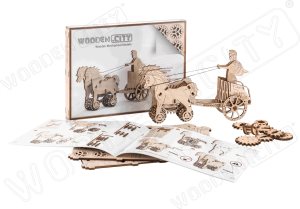 In ancient times, the number of a rivals chariots determined the power of his army. Because of this ancient machine of war, the army of the Roman Empire was one of the most powerful and maneuverable in those days. Because it fought so many wars, the Romans had to move quietly from one hot spot to another. Therefore, they built great roads not only for civilian traffic, but also for the movement of war chariots. The width of the road was determined by the spacing between the chariots wheels, which itself was measured by the distance required for its two horses to run side-by-side. Chariot wheels left a deep impression on the roads. Through the centuries, Europeans continued to build their carriages at roughly the same axle width so that they could easily travel on these roads. Accordingly, it is said that George Stephenson developed his railroad steam engine prototype by setting up rails on a nearby chariot road, which ultimately determined the width of standard gauge tracks today! Build your chariot and dive into the legends of the Roman Empire! Just pull your cart back a little and it will roll across any hard, flat surface. If you collect a few chariots, you can arrange a real battle between Roman legionnaires and barbarians. Your children will be delighted! A great gift for historians and adventure lovers, the ROMAN CHARIOT will be one of their first and favorite models among the 3d jigsaw puzzles produced by Wooden.City.
