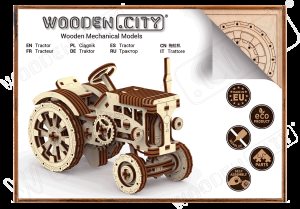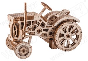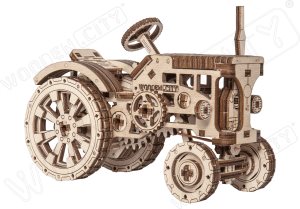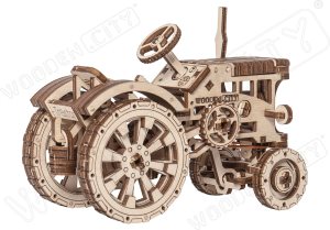 People with stubborn, strong-willed characters are often compared to tractors. It runs like a tractor, that is, it does everything to overcome obstacles. Wooden Citys TRACTOR travels easily on uneven ground! Just add it to your collection and give it a try! Wooden machines by Wooden City are a real find! After all, our TRACTOR has a chassis and large rubber all-terrain wheels. Collect this machine with your children, put a toy tractor driver on the seat and you can pretend to be a farmer! You can gather together a couple of tractors and run farm races over uneven surfaces. Who is the winner? You! The thoughtful design of our tractor is apparent in its details: dashboard, ribbed steering wheel, bucket hanging on a hook. A model that runs on gears. Our TRACTOR wooden construction kit is a worthy addition to your collection 3D puzzles. This model, assembled without adhesives, is for true connoisseurs!