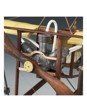 The construction kit has all the wooden and laser cutted parts, fabric cover for the wings, metal and brass parts and photo-etched metal parts.