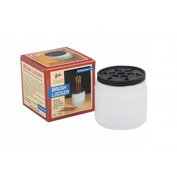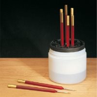 Special fittings hold the brushes suspended so the tips don't touch the bottom. Any harmful solvent vapour remains trapped inside the container and the brushes will always be ready.