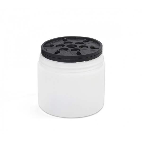 Indispensable for keeping your brushes always ready for use. Pour the solvent or washing fluid into the container. Insert the brushes in the holes provided.