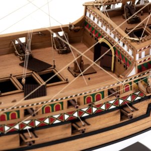 Revenge was a new type of warship, a Race Built Galleon. She was built following the direction of Sir John Hawkins and supervised, it is thought, by the master shipwright, Matthew Baker.