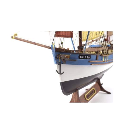 The new wooden model ship of the tuna boat Marie Jeanne has high quality parts for assembly, they fit perfectly: pre-cut board by high precision laser, noble woods, photo-etched parts, brass and die-cast, plus hand-sewn cotton sails ready to be placed. As a gift bonus, this naval modeling kit includes a wooden exhibition base with a metal name plate so that the faithful miniature replica is perfectly exposed once assembled. The modeler can enjoy a much more enjoyable and easy assembly experience with this new scale model. Once assembled, the Marie Jeanne wooden model measures 22.24'' (565 mm) length, 4.52'' (115 mm) width and 19.48'' (495 mm) height.