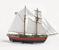 This kit features: plank on frame construction, laser cut plywood keel and frame components, wooden superstructure and decks, hull and deck fittings in wood, brass and/or plastic, Mast and spars, rigging cord in various sizes and printed sails. Includes Full size plan sheets and an instruction manual with English Text.