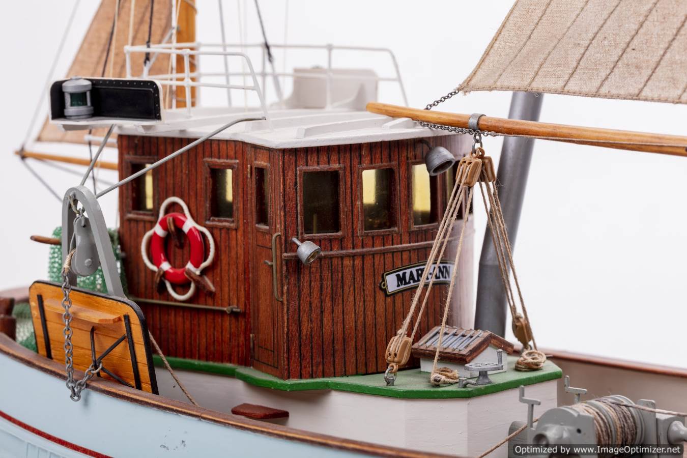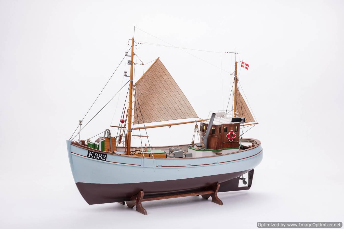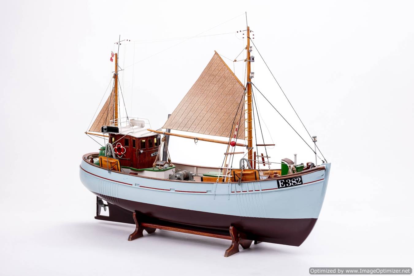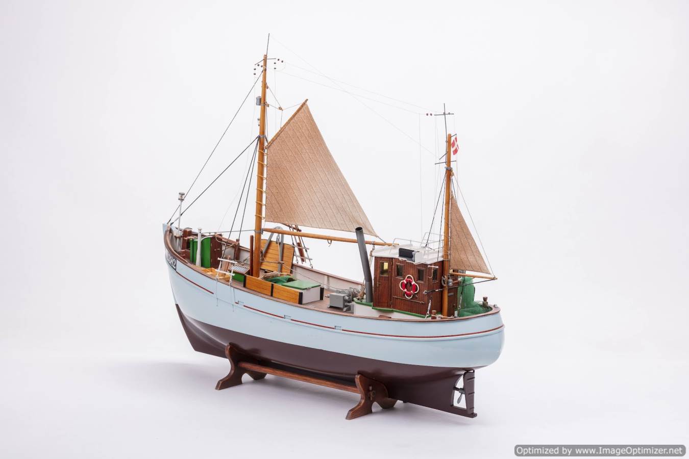 The Mary Ann is the first model produced by Billing Boats in 1958. It has been modified 4 times during the years and changed names 3 times. The ship is a typical 45-ton cutter commonly seen in the harbour at Esbjerg, Denmark; often more than 600 cutters of this type can be seen at a time. The model kit is based on the original ship drawings. Built in 1957 in Esbjerg. Tonnage 49,97 gross register ton. Lenght overall 18,35m. Beam 5,35m. Lenght of the mast 9,50m. Total sail area 7,75sq.m. Motor 2-cylinder diesel. Engine speed 12 knots. Crew 3-4 men. Fishing area - North Sea. Fishing tackle - Trawl. Haul - Firstly herring and cod and secondly trash fish.