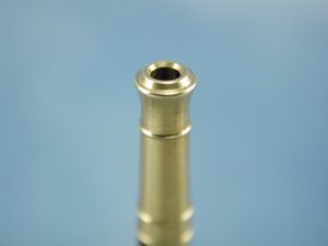 Sold in packs of 2, these turned brass carriage gun barrels are faithful to the originals of Circa 1790, even including an authentic trunnion hole drilled off centre. Gun length: 26mm.