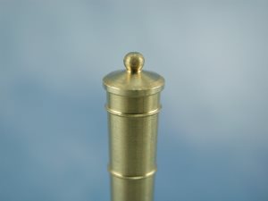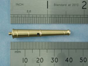 Sold in packs of 2, these turned brass carriage gun barrels are faithful to the originals of Circa 1790, even including an authentic trunnion hole drilled off centre. Gun length: 41.6mm.