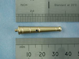 Sold in packs of 2, these turned brass carriage gun barrels are faithful to the originals of Circa 1790, even including an authentic trunnion hole drilled off centre. Gun length: 35.1mm.