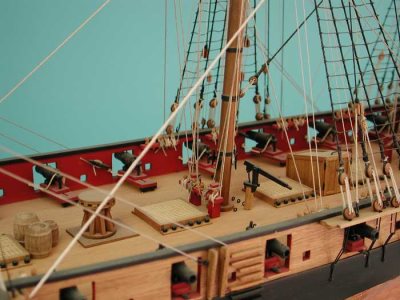 The Caldercraft HMS Snake kit includes: 18 cast carronade; double plank on bulkhead hull; walnut CNC parts; 900 copper plates; black and natural hemp for rigging; full size plans and comprehensive instruction book.