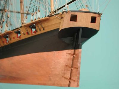 The Snake class were ship rigged sloops. This class was very business like with a flush deck and nine cannons or carronades each side, they were very fast and seaworthy. As originally built Snake had a full ordinance of 32 pounder carronades. Carronades replaced the carriage guns because at close quarters the short range carronades proved devastating to their opponents. Class dimensions were: length 100; breadth 306; displacement 382 tons with a crew of 121.
