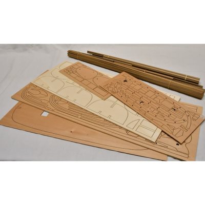 The Mantua kit features the following: A plank on hull frame construction, building plans with general detail, English Instructions, walnut or lime planking, wooden masts and spars, brass and walnut fittings, rigging cord and sailcloth. All sheet ply sections are laser cut for accuracy.