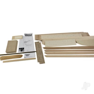 The Dumas model of the Creole Queen is constructed of precision die-cut birch and mahogany plywood. The detail package included in the kit is immense. It has stampings, wood turnings, castings, plastic parts, and a 3 page decal set. Running hardware kit #2349 is the paddle wheel drive system for the model. It includes an internally reduced gear head motor that supplies the perfect speed to the paddle wheel. For the more adventurous, the size of the Creole Queen leaves the door wide open for those modelers wishing to try less conventional powering methods. Live steam would certainly be a possible option. So if you have always dreamed of building your own working stern wheeler, the Dumas Creole Queen is for you.