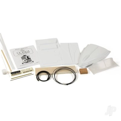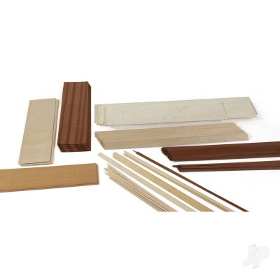 This fun little speedster is from the era of big fins and wings. The sporty Cobra model is an all-wood kit featuring a double planked birch plywood and mahogany veneer hull. The two-tone deck is achieved with the use of basswood and mahogany veneer. The hatch and fin section is preformed ABS plastic. Chrome fittings, complete running hardware including a three-blade brass prop, decals and flag complete this blunt nose beauty of the 50s.