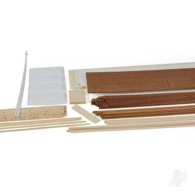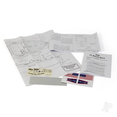 In 1940 Chris-Craft introduced a new hull style called the torpedo deck or barrel back. Fifty plus years later it is among the most highly coveted of the famed Chris-Crafts, and thanks to the model masters at Dumas, you can own one in miniature. In keeping with the Dumas tradition of Chris-Craft kits, this model features a doubled planked PVC and mahogany veneer hull, preformed plastic seats, chrome fittings, and complete set of running hardware. Color decals and flag and burgee helps set off the model.