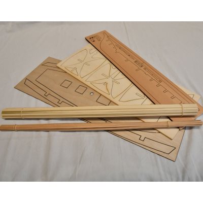 The Mantua kit features the following: A plank on frame hull construction, building plans with general details, English instructions, Ply sheet & balsa planking, wooden masts and spars, brass and walnut fittings, rigging cord and silk flags. All sheet ply sections and frames are laser cut for accuracy.