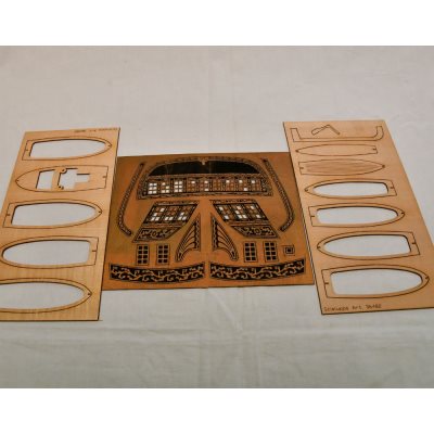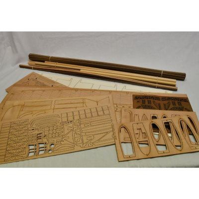 The Mantua kit features the following: A plank on frame hull construction, building plans with general details, English instructions, lost wax brass castings walnut planking, wooden masts and spars, brass and walnut fittings, laser etched details, rigging cord, sail canvas and silk flag. All sheet ply sections are laser cut for accuracy.