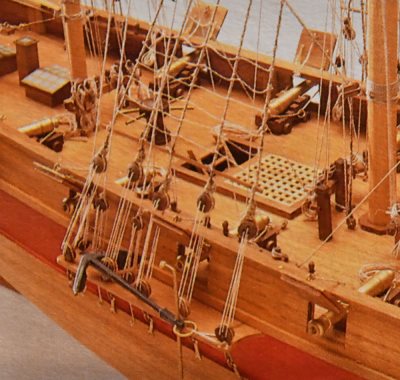 Mantua's Astrolabe is a fine reproduction of a typical French sloop from the early 1800s. this model was built up using plans obtained from the French Naval Museum of Paris. The Astrolabe was a famous exploration and survey vessel.