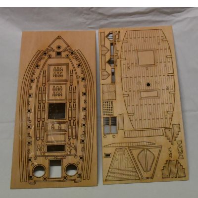 The Mantua kit features the following: A plank on frame hull construction, building plans with general details, Fully Illustrated Manual, walnut planking, wooden masts and spars, brass and walnut fittings, etched brass details, rigging cord, sailcloth. All sheet ply sections are laser cut and etched for accuracy.