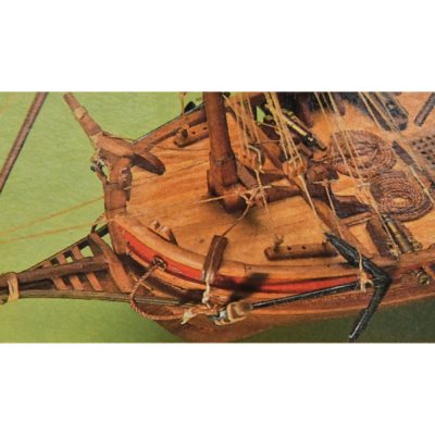 The Sergal Kit of the Xebec Features: A double plank on frame hull construction, building plans with general details, English instructions, lost wax brass castings, walnut and lime planking, wooden masts and spars, brass and walnut fittings, etched detailings, rigging cord and silk flags. All sheet ply sections are laser cut for accuracy.