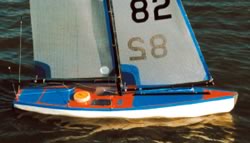 A classic One Metre design with ply sides and rounded underwater hull, and therefore requiring slightly more modelling ability to complete. The full size frame lines, fin and rudder sections are shown but no model construction details. Designed by Charles Detriche.