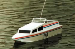 Simple to build in balsa and ply, this semi-scale 540 powered boat has a well designed underwater shape which gives a surprising turn of speed. Model size 510mm by 170mm. Designed by Hal Harrison.