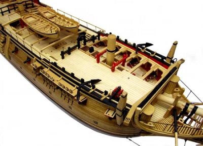 Weve designed our kit as an admiralty model as well to show off the incredibly rich detail of its decks, furnishings and fittings. Additionally, the quarterdeck is left un-planked on the port side, leaving the great cabin and gun deck visible.