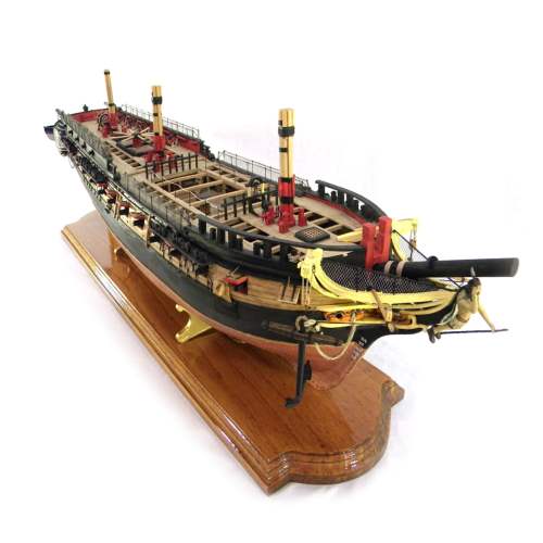 Model Shipways kit is relatively easy to build, thanks to CAD-assisted laser-cut basswood parts, which come in a variety of thicknesses from 3/32 to 1/8. Fine basswood is also used for hull and deck planking. An unusual feature of this model is that the hull is planked inside and out.