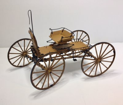 At a large 1:12 scale (1" = 1 ft.), our model is historically accurate and relatively easy to build. Kit features laser-cut basswood sheets and basswood strips. Expertly cast Britannia metal parts include sprigs, axles, front & rear foot steps, luggage rail, seat rail, apron hand rail, cross and axle braces, couplings, fifth wheel, mounting brackets, whip holder and many other details. A sheet of photo-etched brass parts provides additional life-like detail. Detailed plan drawings and 32-page illustrated instruction manual assure trouble-free assembly.