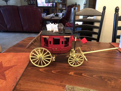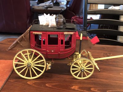 Our kit replicates the original with steerable wooden wheels, working suspension and opening doors. Cast metal wheel hubs, axles and door hinges; brass strips, rods, nails, nuts and bolts and photo-etched brass parts add authentic detail. Driver s bench is perched at the top of the wagon and interior is complete with seating for nine. Decal sets for both Wells Fargo and Butterfield let you choose the version you ll build. Laser cut basswood parts, well-drawn plans and clear instructions make assembly easy.