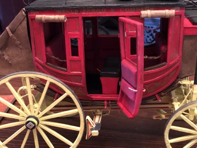 The Abbott Downing Company of Concord, New Hampshire built its first stagecoach in 1827. These coaches were used for passenger and mail service between St. Louis and San Francisco. Abbott produced coaches for both Wells Fargo and Butterfield Overland Stage companies.