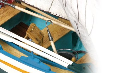 Gamellas are, along with dornas, the most emblematic of the popular Galician embarkations. With snubbed bow and stern and a flat bottom they can be either rowed or sailed. Completely built in pine they were traditionally painted red, using a mixture that served as both careening and paint. Nowadays they can be found painted in a variety of bright and cheerful colours.