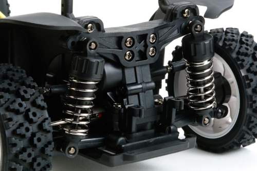 The XV-01 chassis offers exciting R/C driving action on both on- and off-road surfaces. It features a front-motor, belt-driven 4WD layout with the gearboxes, drive belt, battery, and R/C unit areas protected by covers against dirt and debris. Holes in the bottom of the chassis further help remove any debris which manages to get onboard, ensuring unhindered off-road performance. Long steering linkage provides stable wheel alignment. In addition, detachable wheel well liners help prevent mud and gravel intrusion. Gear differential units enable customization with different viscosities of differential oils.?