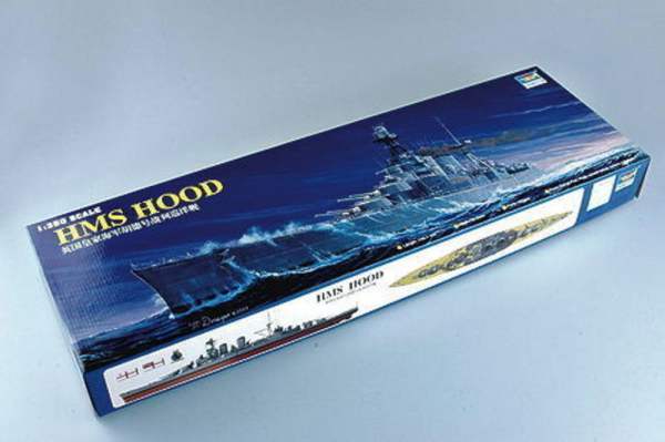 The third and last HOOD was the mighty battle cruiser, which was laid down in 1915 as a class of four, and finally completed until 1920. Certainly she was the most powerful warship of her day and her displacement of 41,200 tons made far and away the heaviest capital ship in the world for Twenty years. In September 1940, Hood spent the winter of 1940-41 on patrols in the northern waters around Iceland watching over any attempted break out by German heavy units. She was thus still employed in May 1941 when Bismarck and Prince Eugen got through the Patrols. Hood and the brand new battleship the Prince of Wales were dispatched to intercept and destroy the German Ships before they broke loose on the British Convoy routes. 24 May 1941, fire was opened at 05.52 at a range of 25,000 yards and Hood and the Prince of Wales were steering towards Bismarck to close the range. The German ship at once replied very accurately and on her third salvo she hit Hood close to the main mast setting her on fire. At 05.55 the British ships began to turn broadside on to the Germans to enable all guns to open fire. As they did so Bismarck fifth salvo struck Hood with devastating effect. A thousand feet high explosion tore her apart and she split in two sinking in less than two minutes. There were only three survivors from her crew of 1,415.